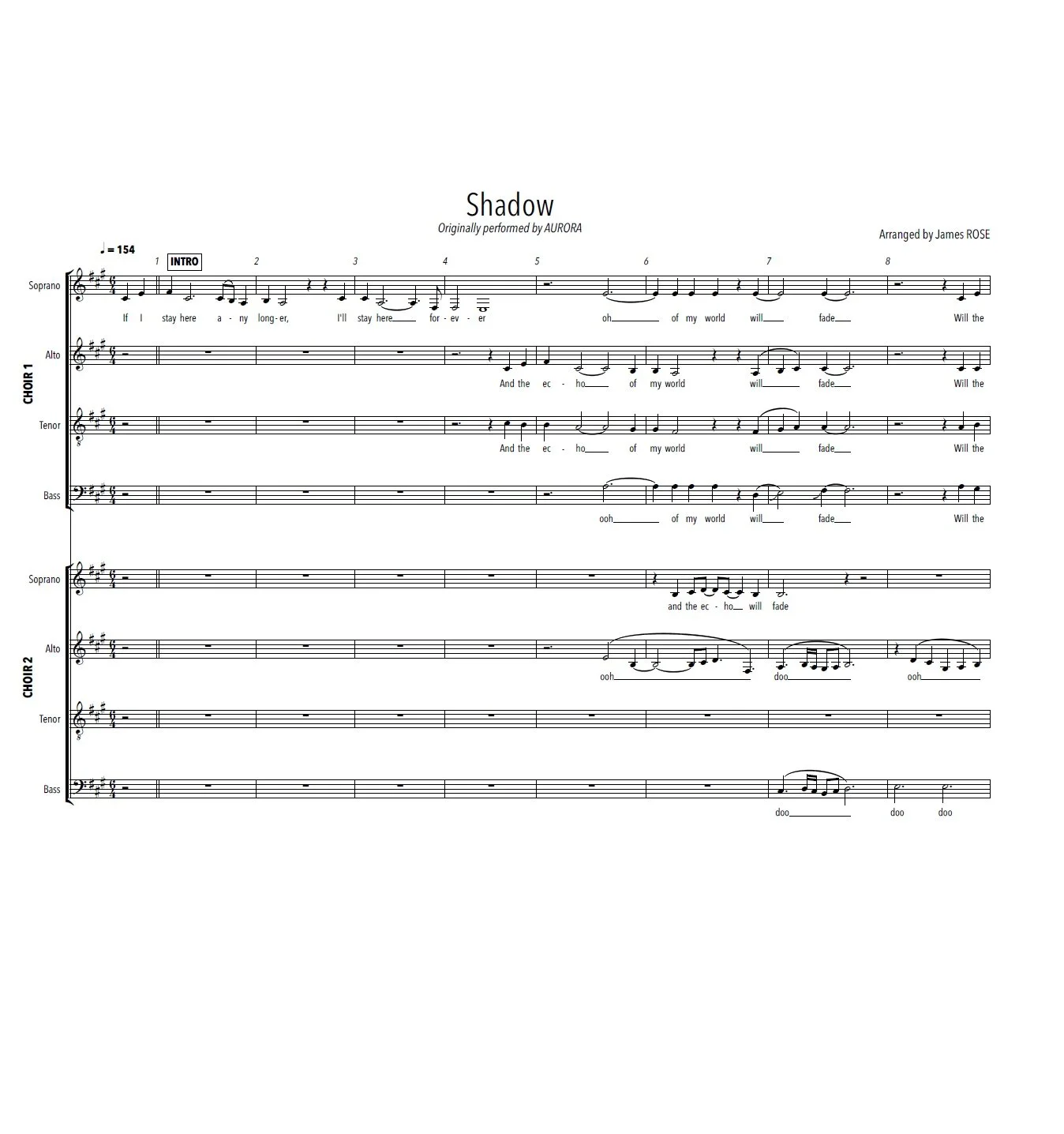 Bon Iver - Second Nature (written with inclusivity in mind for two choirs: SATB easier + SATB trickier) £75.00 Aurora - Echo of my Shadow (written with inclusivity in mind for two choirs: SATB easier + SATB trickier) £75.00 The Beatles - Let It Be (Acapella Academy version - SSAAATTBaB) £75.00 Til there was you (Acappella Academy Version - SATBaB + leads) £75.00 Prayer - original❤️ SSAATTTBaB £75.00